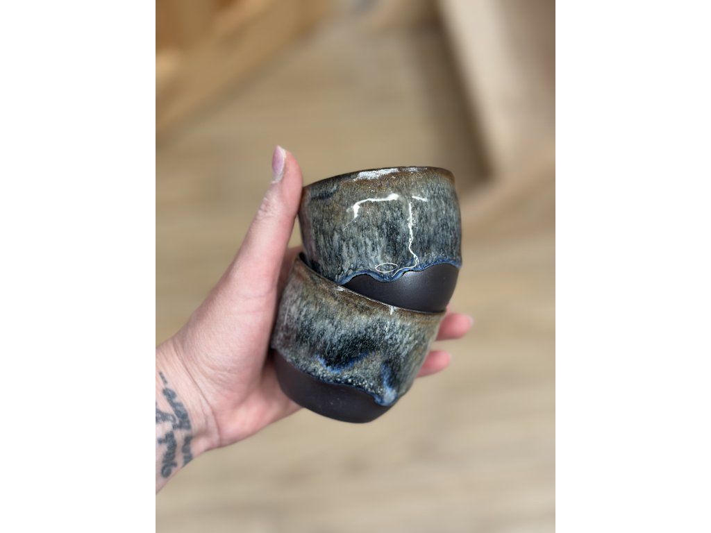 Tento kalíšek jsme vytvořili s důrazem na detail a ruční práci. Tvar nejdříve vzniká na hrnčířském kruhu. Každý kalíšek je pak pečlivě dočištěn a dotažen do finální podoby ručně – díky tomu i lité výrobky nesou stopy řemesla a autenticity.