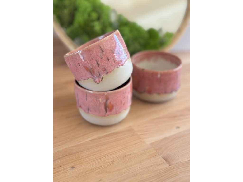 Tento kalíšek jsme vytvořili s důrazem na detail a ruční práci. Tvar nejdříve vzniká na hrnčířském kruhu. Každý kalíšek je pak pečlivě dočištěn a dotažen do finální podoby ručně – díky tomu i lité výrobky nesou stopy řemesla a autenticity.